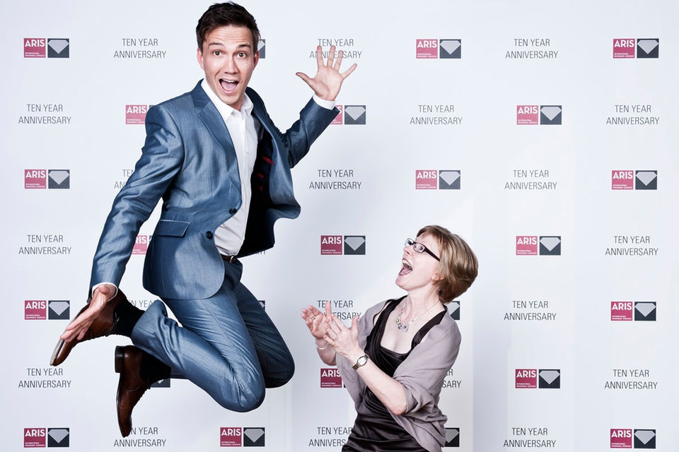 Das Logo Ihrer Firma ist immer wieder Teil der Show. Visuell auf dem iPad und verblüffend als Tattoo auf dem Arm.